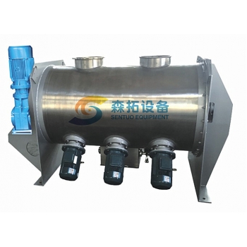 犁刀混粉機(jī),由主軸減速機(jī)帶動(dòng)犁刀組軸運(yùn)動(dòng),一部分將物料沿筒體圓周作徑向運(yùn)動(dòng),同時(shí)將物料沿犁刀兩側(cè)的法線方向拋出,另一部分被拋出物料經(jīng)飛刀組時(shí),被高速旋轉(zhuǎn)的飛刀剪切攪拌而強(qiáng)烈也適合粘狀、稠狀、塊狀固—固(粉體與粉體)、固—漿(粉體與膠漿液)的物料或密度差異較大的物料也能混合。