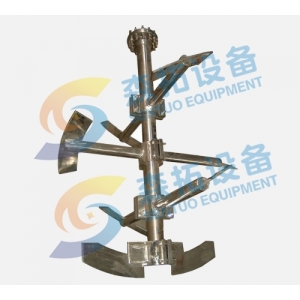綜合了槳式攪拌器與螺帶攪拌器的特點(diǎn)而開(kāi)發(fā)的新型攪拌器,在較低粘度下操作類(lèi)似于槳式攪拌器,在較高粘度下則類(lèi)似于螺帶式攪拌器。